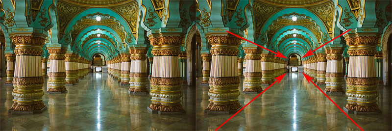 در این عکس، ردیف ستون‌ها در سمت چپ و راست، خطوط راهنما را ایجاد کرده‌اند که پیش‌زمینه و پس‌زمینه تصویر را به هم متصل می‌کند و به سمت درِ انتهای راه اشاره دارد.